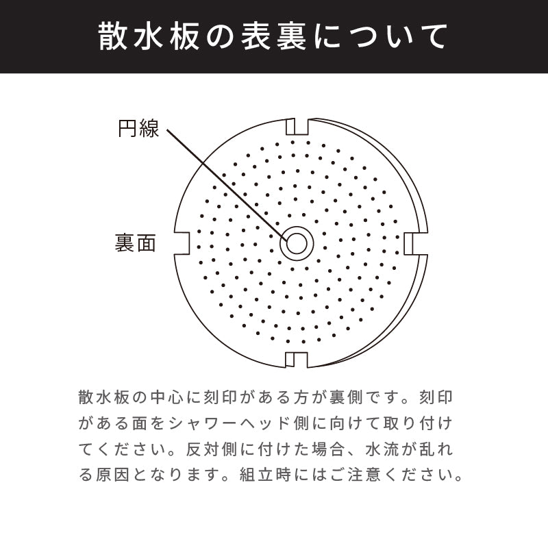 水流が乱れた場合は、目詰まりが生じている可能性があります。目詰まりは、散水中に乱れた水流の穴を親指の中心部で塞ぐと解消される場合があります解消されない場合は清掃してください。