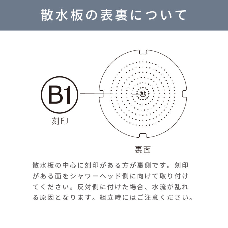 水流が乱れた場合は、目詰まりが生じている可能性があります。目詰まりは、散水中に乱れた水流の穴を親指の中心部で塞ぐと解消される場合があります解消されない場合は清掃してください。